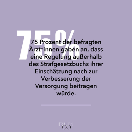 Als Erstunterzeichnerinnen des offenen Briefes zur Entkriminalisierung des Schwangerschaftsabbruchs setzen wir uns deshalb für die ersatzlose Streichung des § 218 StGB ein. Stattdessen wollen wir im Einklang mit der Expert*innenkommission für eine straffreie Regelung und damit für die Entkriminalisierung des Schwangerschaftsabbruchs sowie für die Abschaffung der Zwangsberatung und der dreitägigen Wartefrist plädieren. Damit soll das Vertrauen in die Schwangeren und die professionelle Unterstützung durch Berater*innen und Ärzt*innen ohne gesetzliche Bevormundung bei dieser individuellen Entscheidung im Vordergrund stehen.